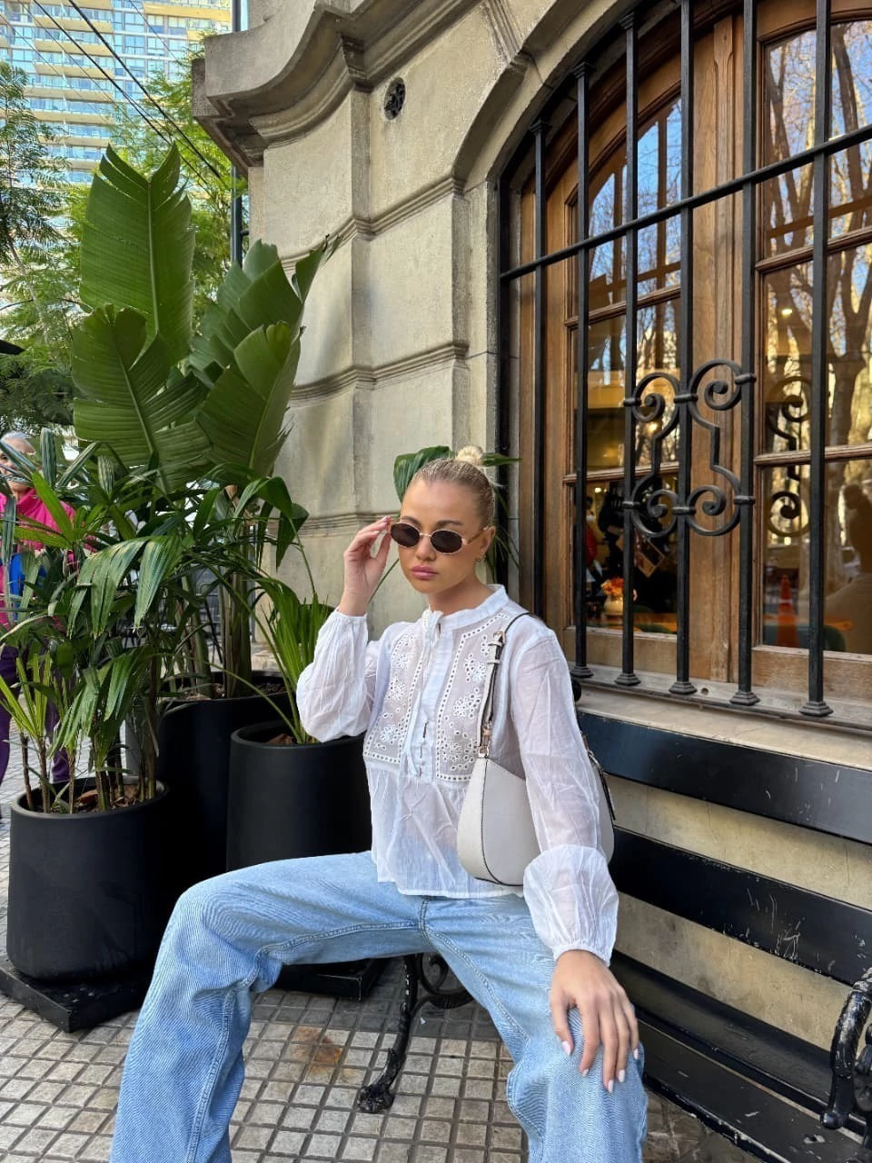 Camisa art 241004Camisa de líneas limpias en tela liviana y fresca. Una base ideal para looks nocturnos con chalecos o accesorios destacados.