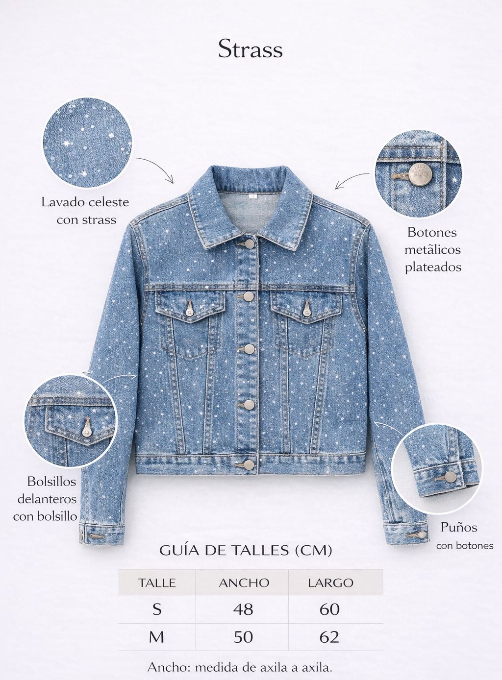• detalle: aplicación de micro strass full prenda