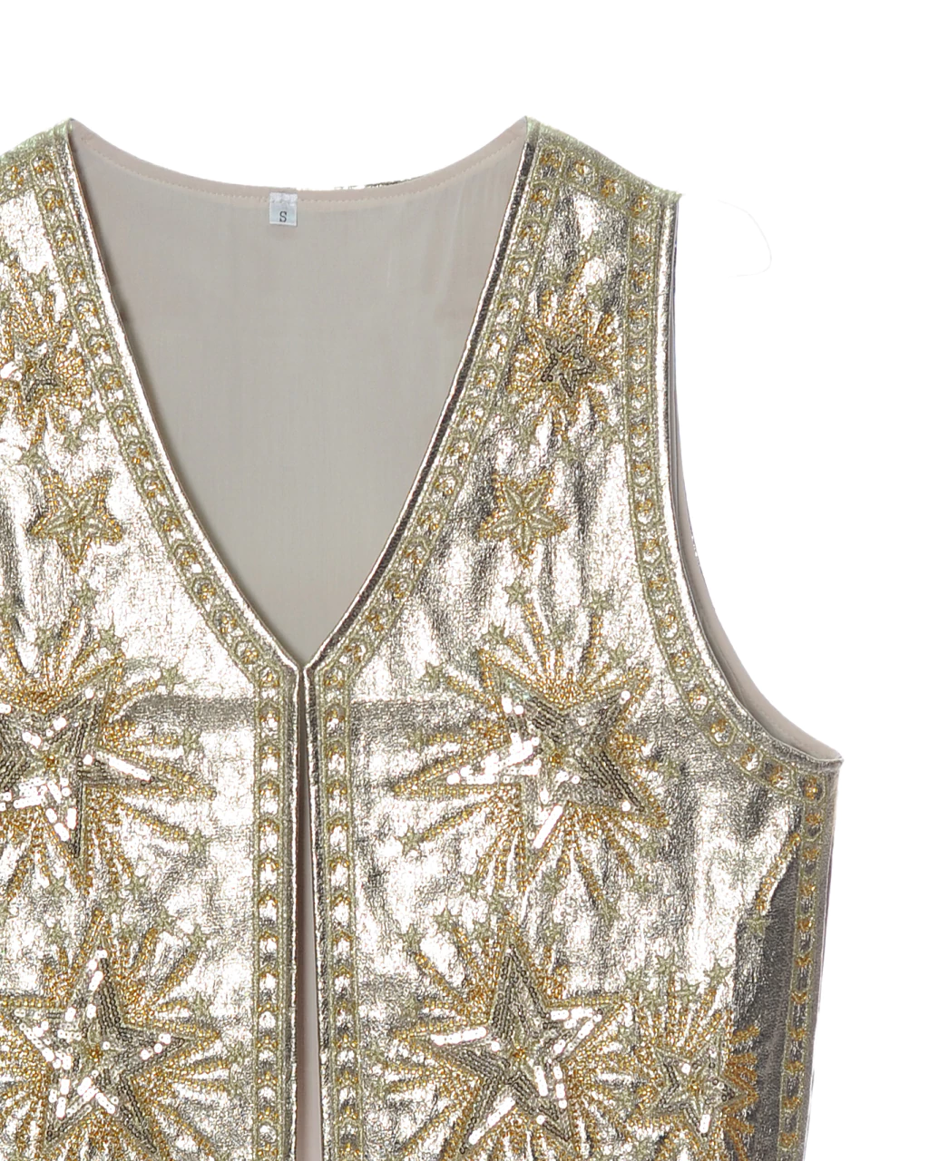 Chaleco art 2108Chaleco sobrio en tela ligera, ideal para dar estructura al look. Perfecto para complementar camisas o tops en un outfit nocturno.