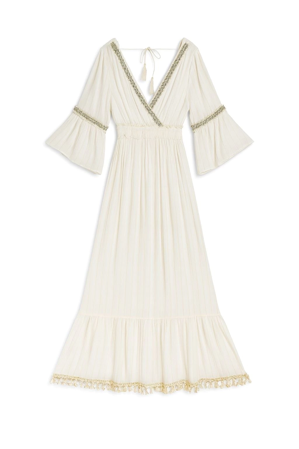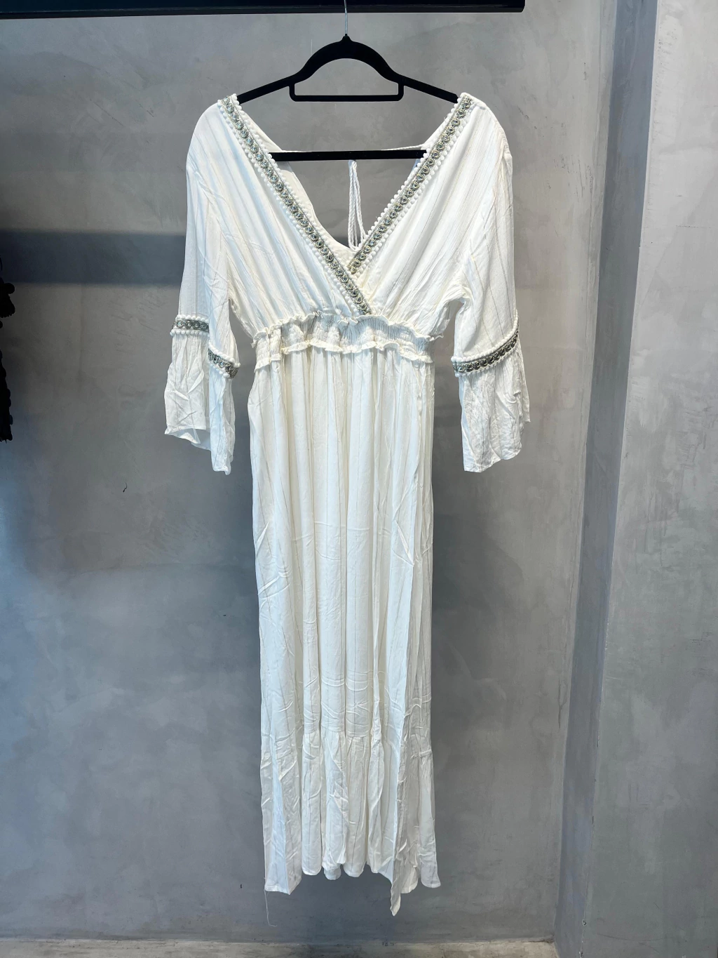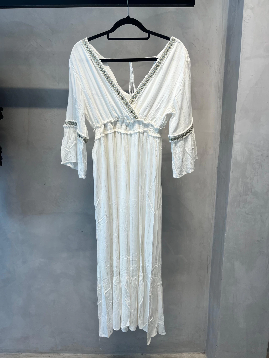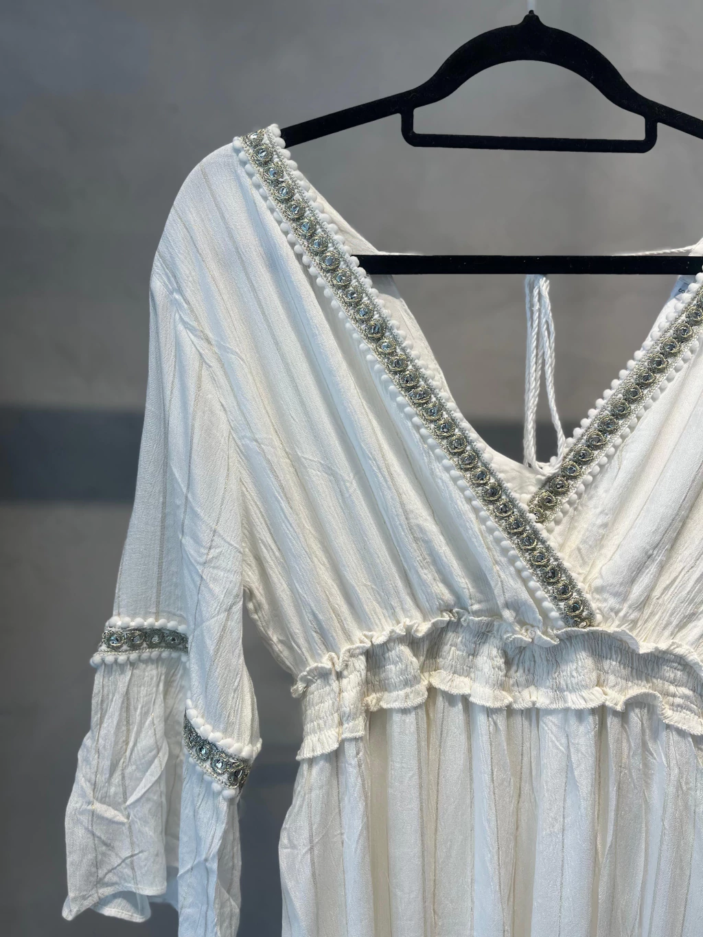 Diseño minimalista dentro del estilo boho, con detalles cosidos y mangas tres cuartos. Ideal para quienes buscan un look relajado pero distinguido.