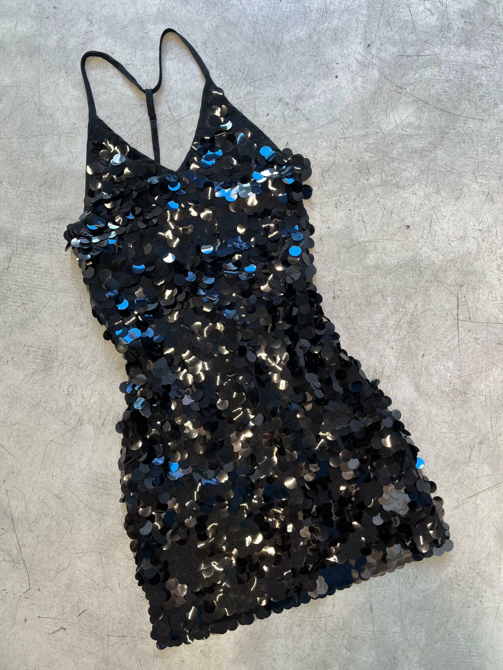 largo: 87cm Vestido impactante confeccionado en lentejuelas XL que reflejan la luz con cada movimiento. Disponible en negro o plateado, es la opción ideal para fiestas y noches donde el glamour es protagonista.